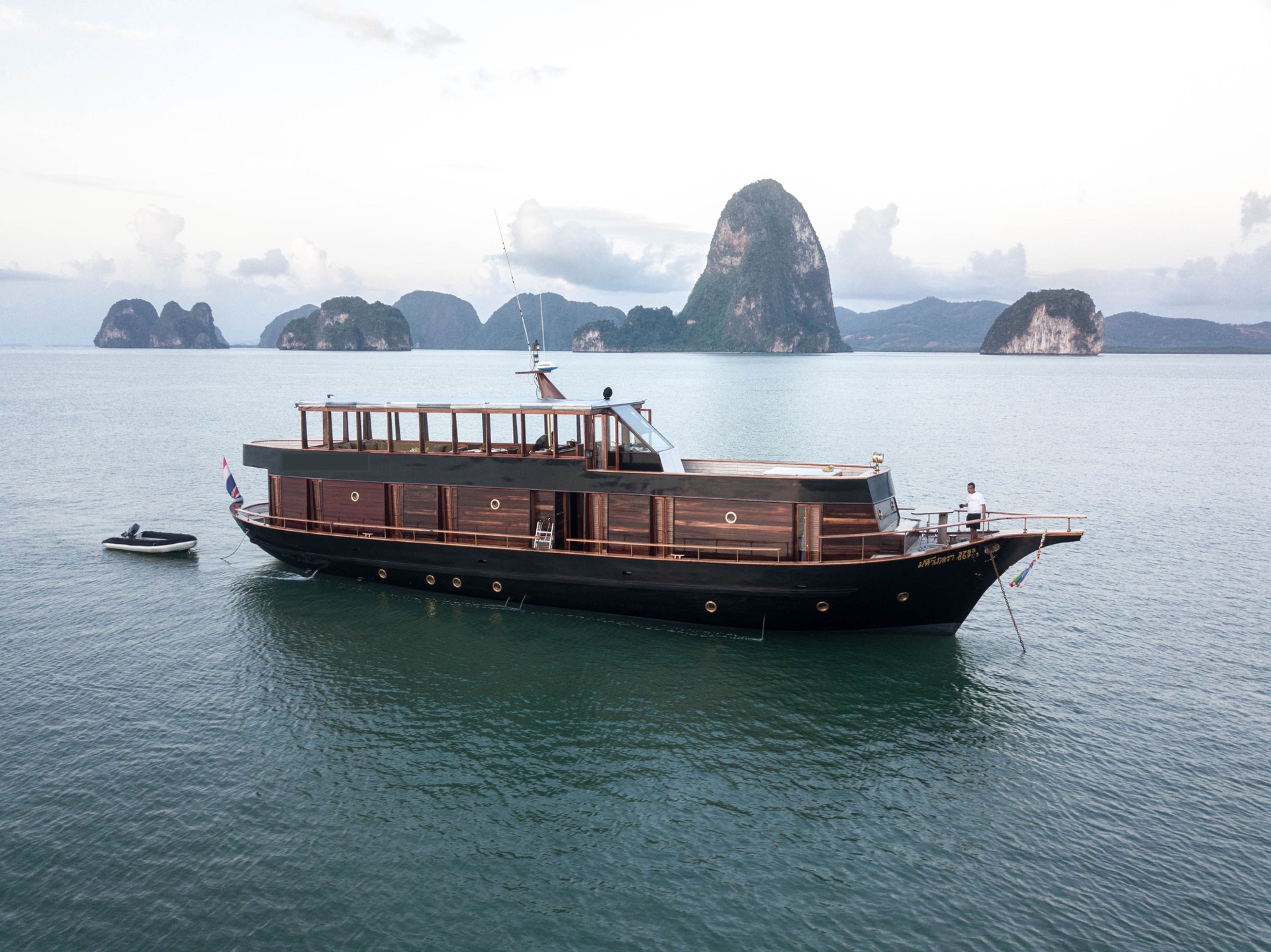 This 90ft traditional Thai-crafted wooden yacht is not just a vessel; it's a work of art. Its sturdy construction ensures safe and comfortable voyages, allowing you to explore the Andaman's beauty in unmatched style.