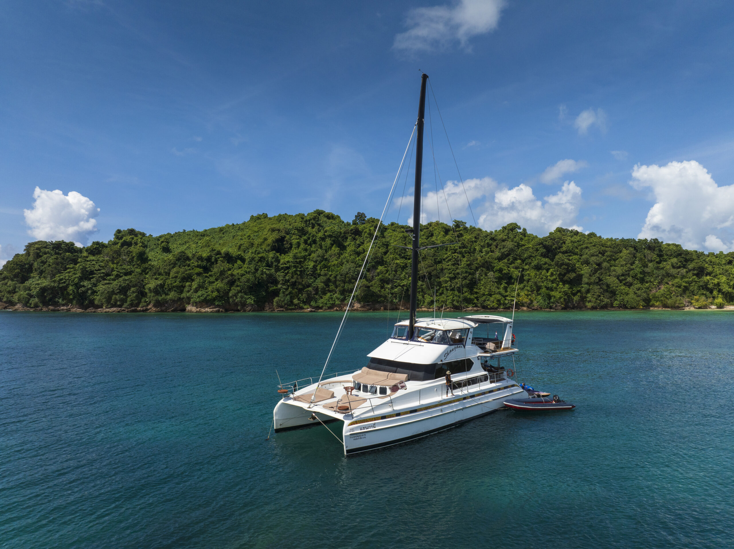 This luxury charter yacht accommodates 8 guests for a cruise around Phuket, allowing 25 guests max on day charters. She can also meet your expectations for an overnight cruise going to the south Andaman Sea Rok Nok & Butang or to the Similan or further north to Myanmar/Burma. Overnight accommodation for up to 8 guests on this luxury charter yacht in Phuket, Thailand is provided by: 1 master cabin, 1 VIP cabin, 2 twin cabins.