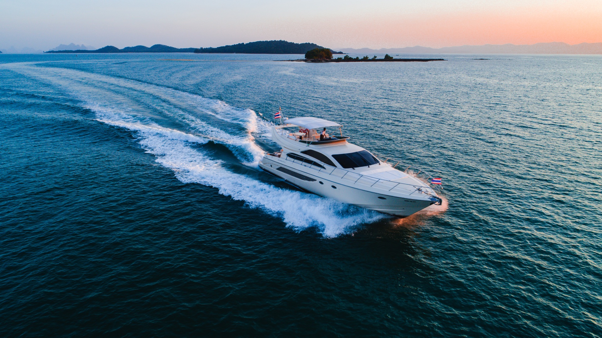 Treat yourself to a private Princess S 65′ luxury yacht charter based in Phuket that you will never forget! This newly built is a motor yacht in immaculate condition, with exceptional space, luxury style and performance to match. It is a wonderfully luxurious yacht for charter with enough space to entertain all guests. The spacious cockpit features a sociable U-shaped seating area with a teak table. Located aft is a large bathing platform which can be lowered for an easy launch and recovery of a tender. The beautifully styled saloon is surrounded by the large wrap-around windows to fill the space with a natural light. Incredibly spacious for her size, the lower deck features 4 beautifully detailed en-suite cabins, including a single guest cabin to port. The beautifully appointed galley aft of the saloon, with an open-plan dining area opposite, has sliding doors and a fully opening electric window which leads out to the cockpit creating an al-fresco bar.