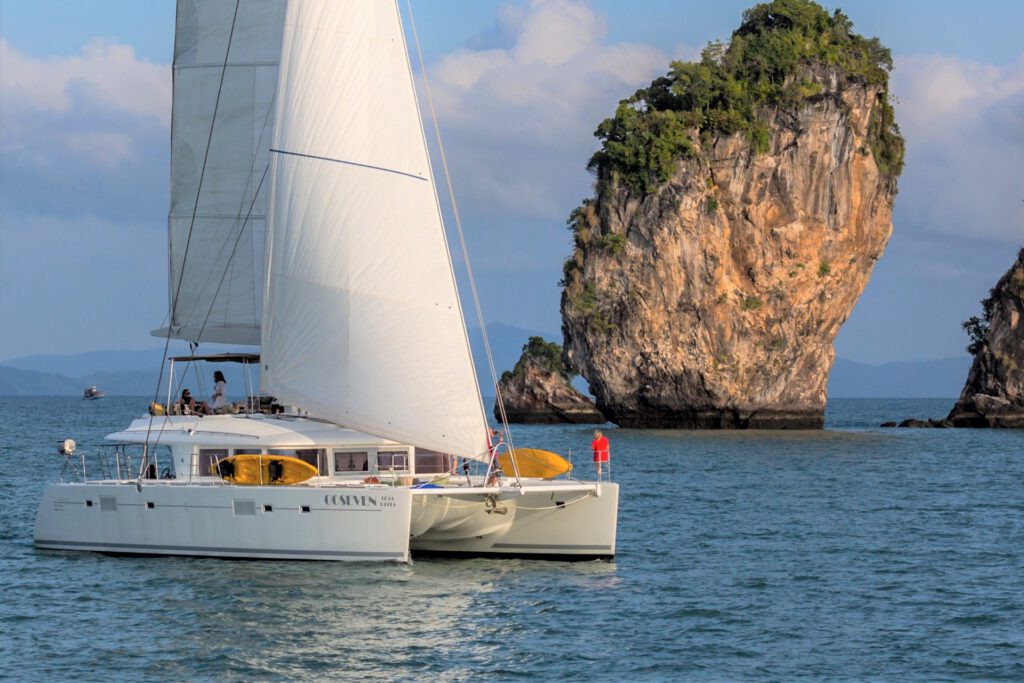 The SpaceCat Yacht 2022 is a stylish, spacious power catamaran available for charter in Phuket