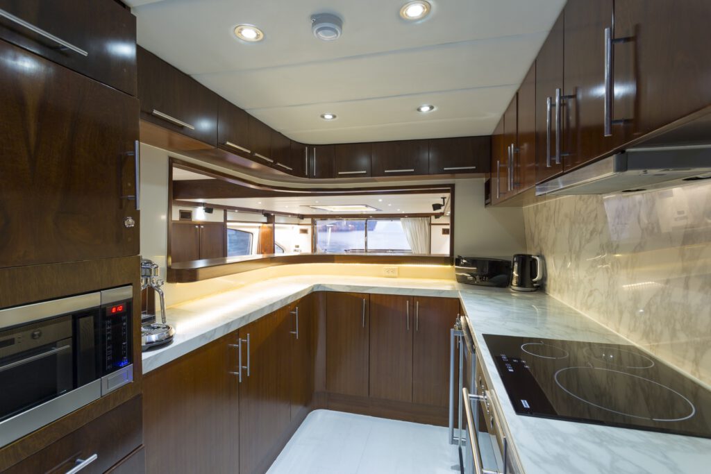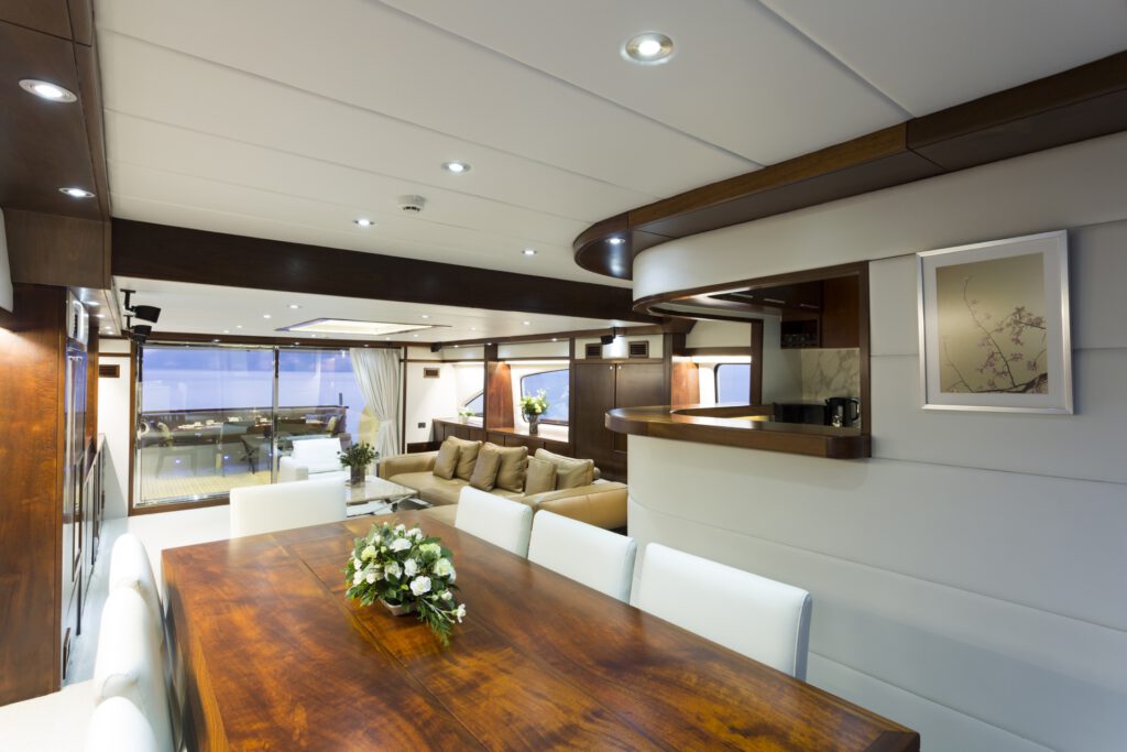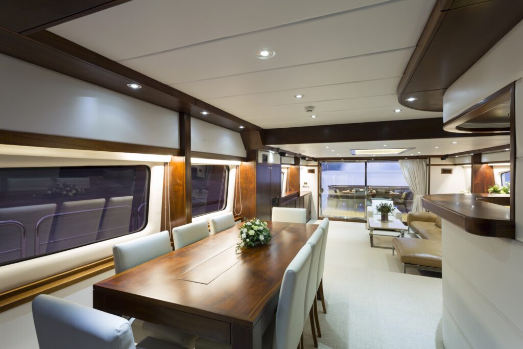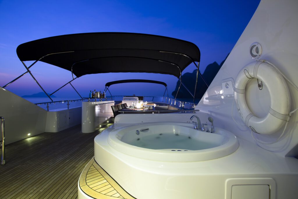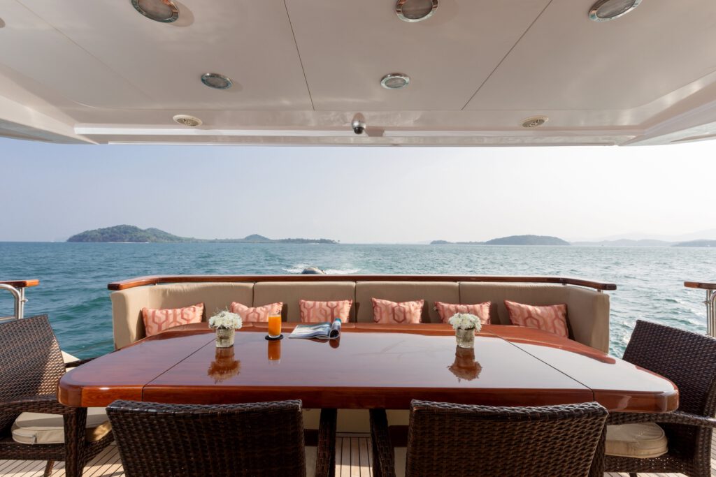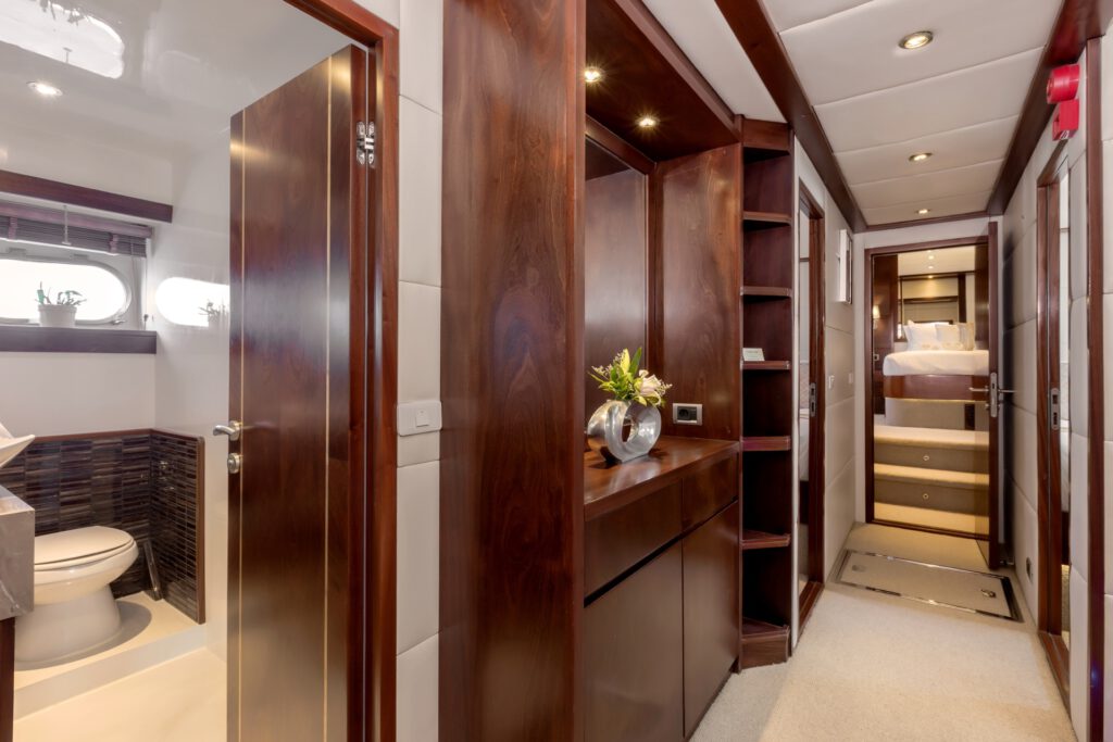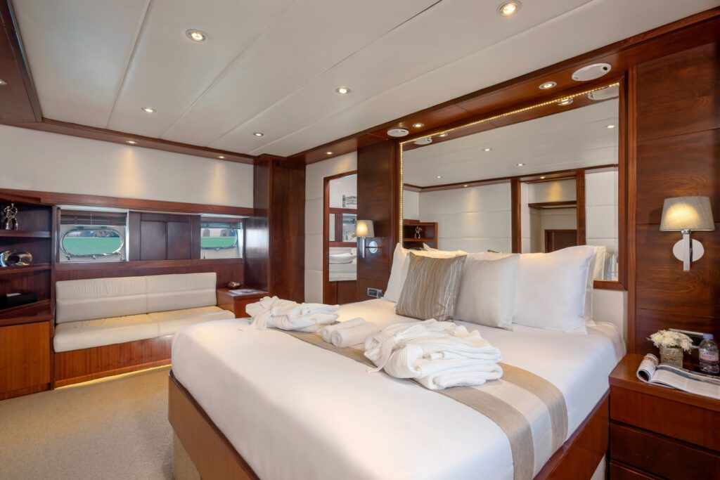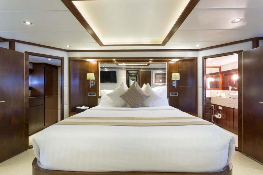 Overnight accommodation for up to 8 guests on this luxury charter yacht in Phuket, Thailand is provided by: 1 master cabin, 1 VIP cabin, 2 twin cabins.
