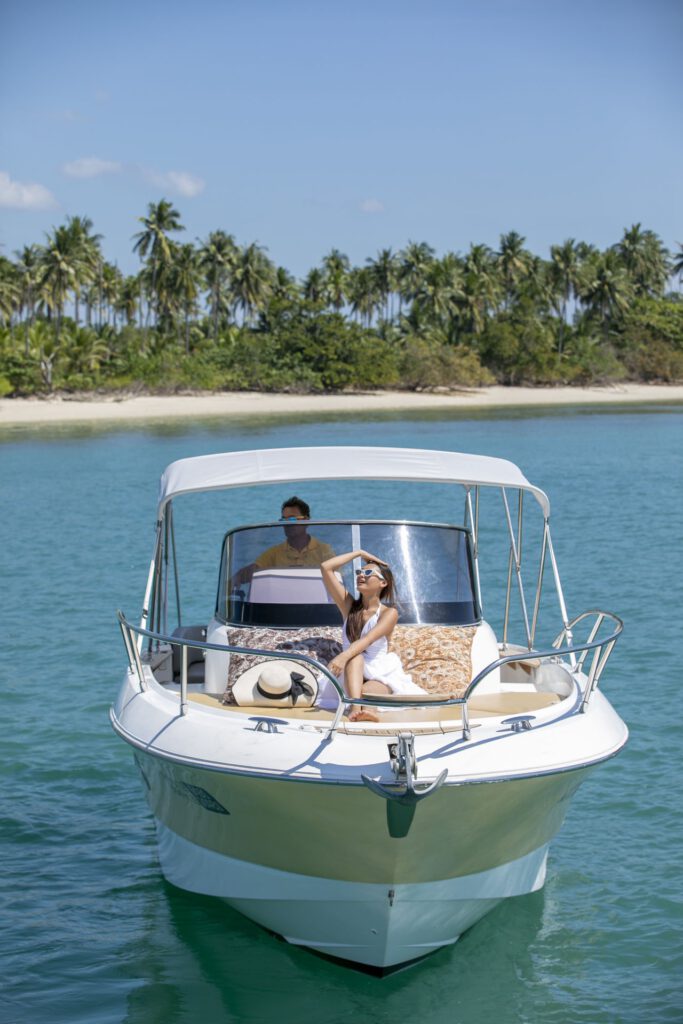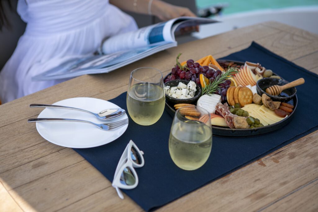 The charter yacht also has a freshwater shower, and beach towels are provided. Snorkeling, Stand up Paddleboard (SUP) and fishing equipment is also available for extra entertainment.