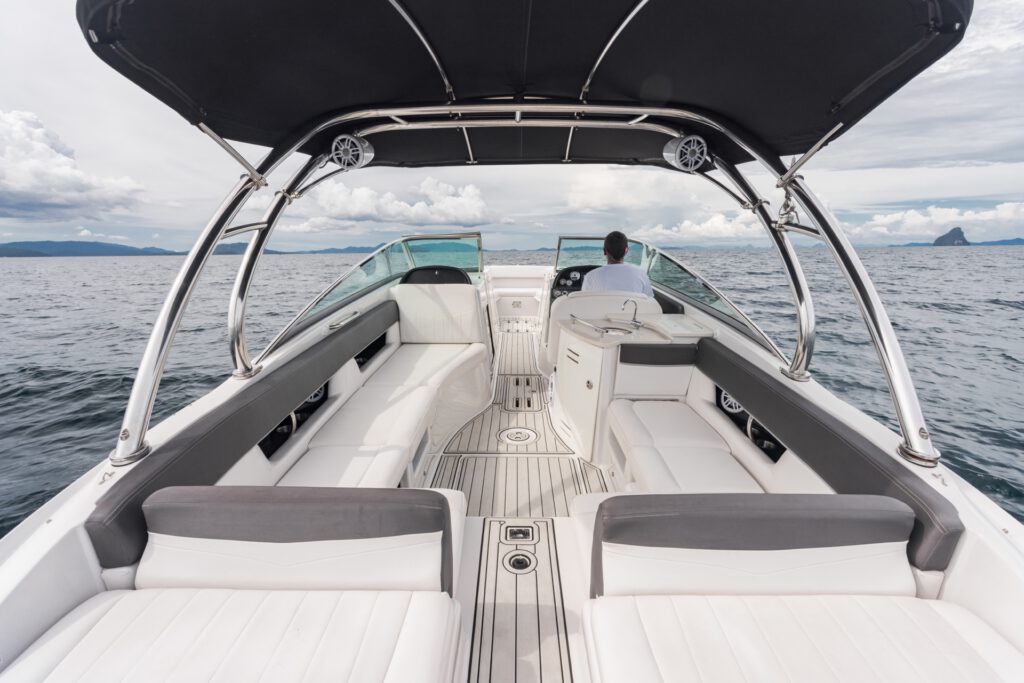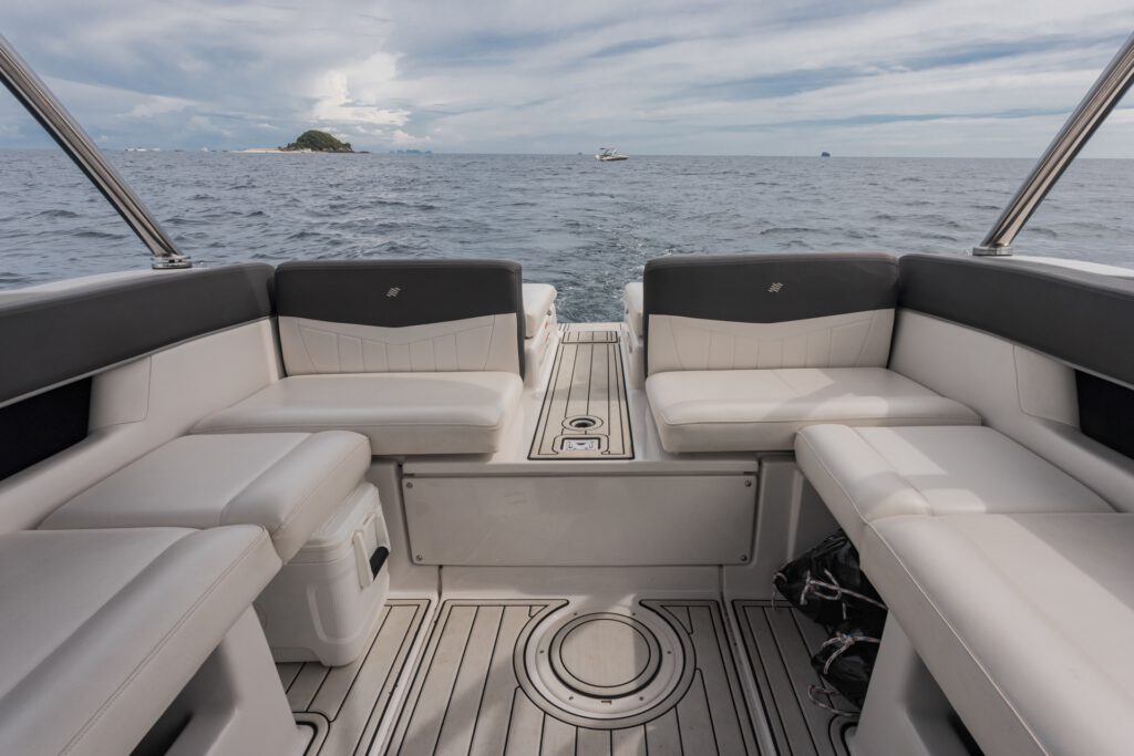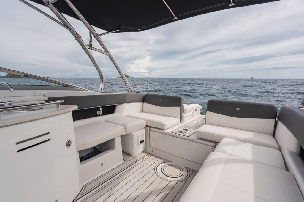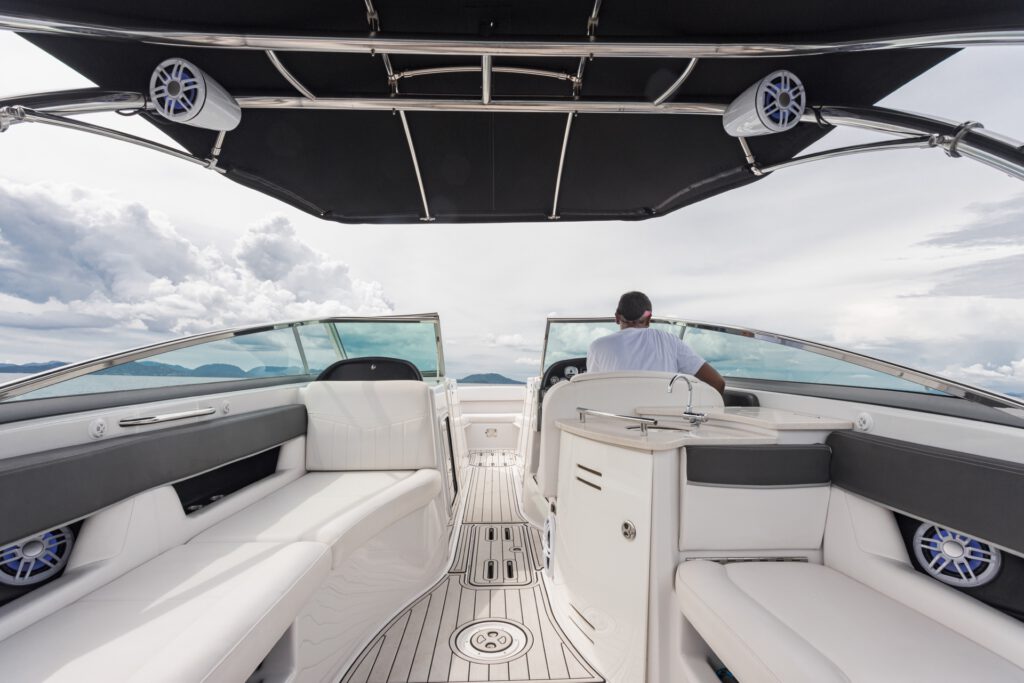 Four Winns 310 is a comfy and stylish boat with a bathroom. The boat is well-appointed with amenities like a windlass, a day berth and bimini to protect heat from the sun. If you like music, this boat is the right boat for you with good sound system to enjoy onboard.