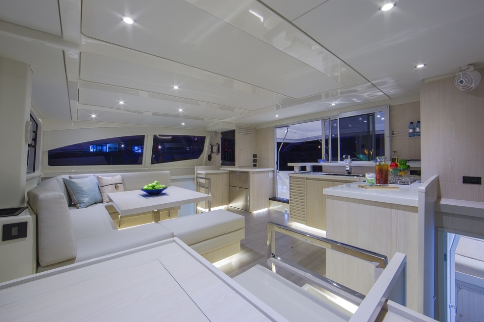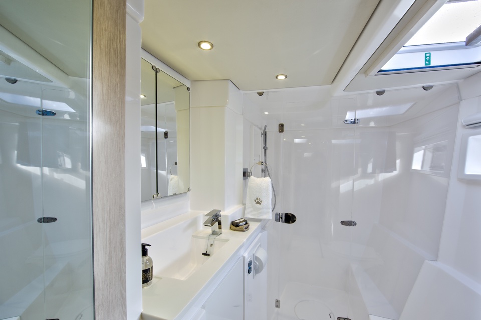 This boat is brand new, and gorgeous – for day cruises she can take up to 15 passengers. This boat has an excellent crew of three. She is fast. For example we can cruise to the popular Phi Phi islands and back on a day charter. Our favourite and most popular cruise is the south east islands of Phuket where the waters are crystal clear, the snorkelling good and there is a pod of Dolphins. The crew will inflate the big slide from the top deck, and the floating jacuzzi. There are kayaks and fishing gear, snorkelling equipment. There is good music and you can plug in your own devices.
