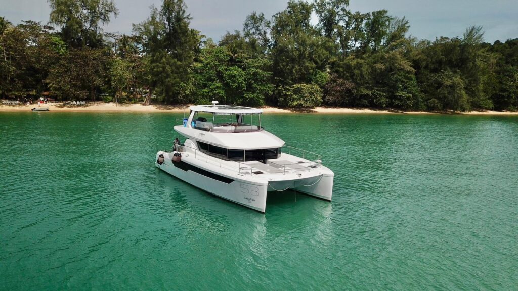 Cruising pleasure, redefined. Experience the Leopard 53 Powercat as it glides through the waters of the Andaman. Engineered to marry the expansive stability of a catamaran with the opulent comforts of a world-class motor yacht, the 53 Powercat is a masterclass in style—built for those who refuse to choose between luxury and performance.