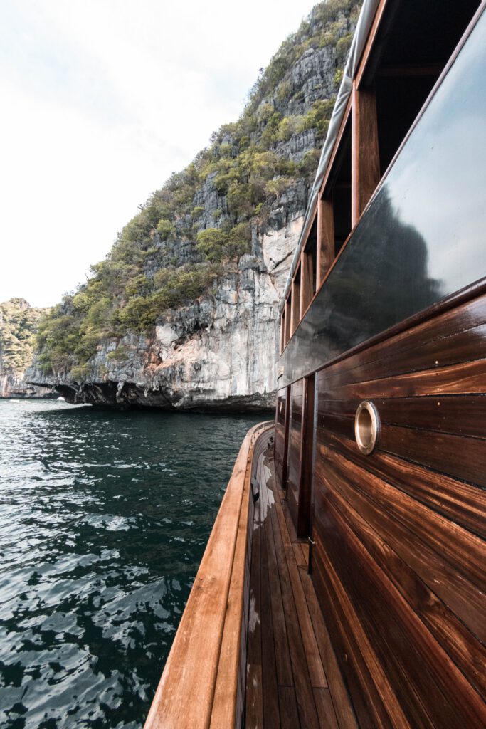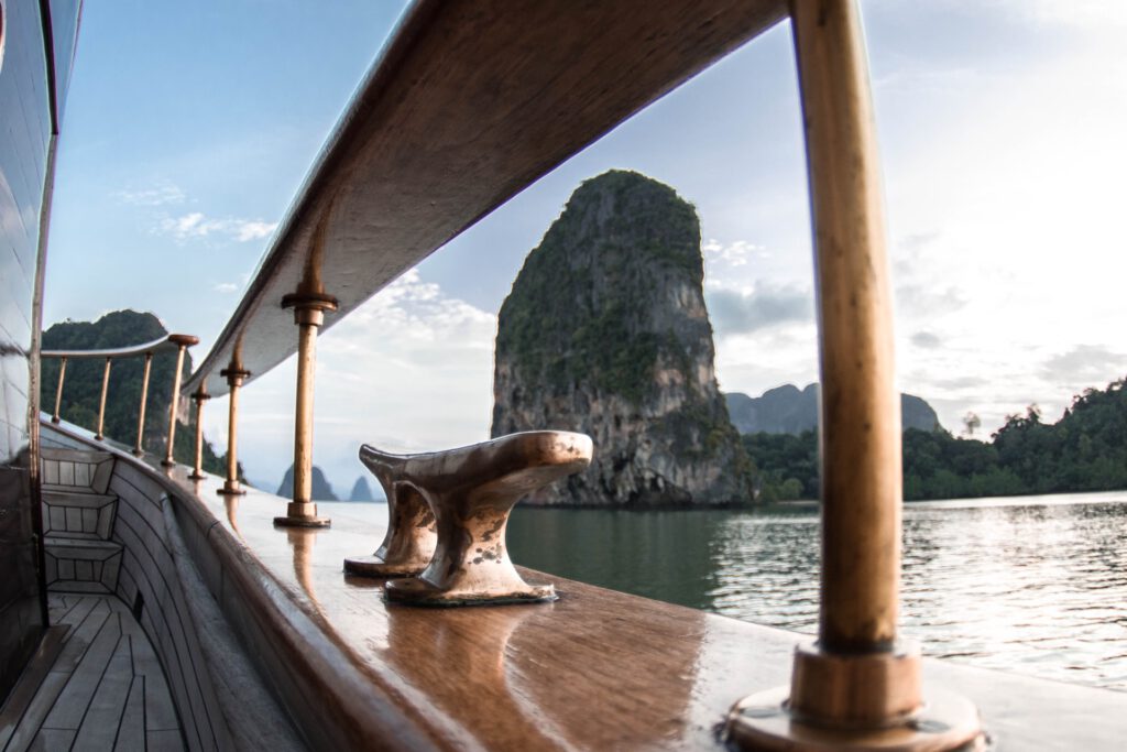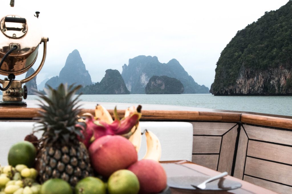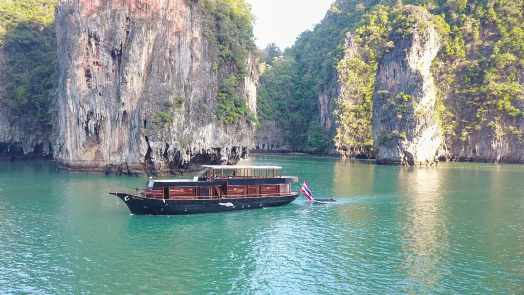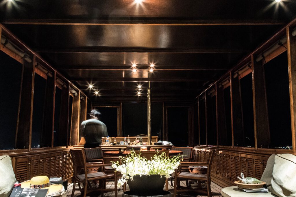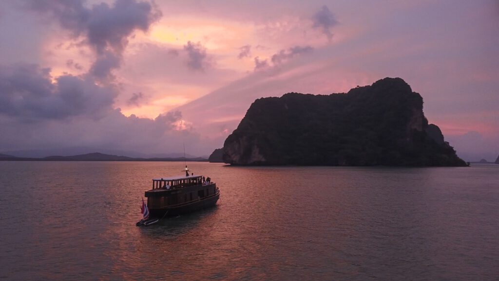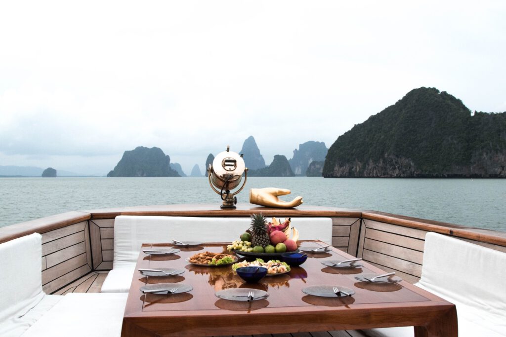 An Asian gone by era atmosphere on board with a dedicated and kind asian crew to take care of your every wish aboard. Her interior is mostly a neutral palate with accents provided by authentic Southeast Asian antiques from the 18th Century. Seamlessly, the ancient and modern interact in the saloon where bespoke designed louvered cabinet hides sound systems and glassware and the staterooms are adorned with tiger-patterned rugs.