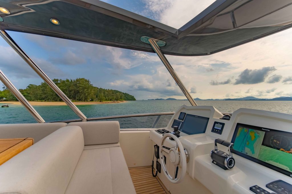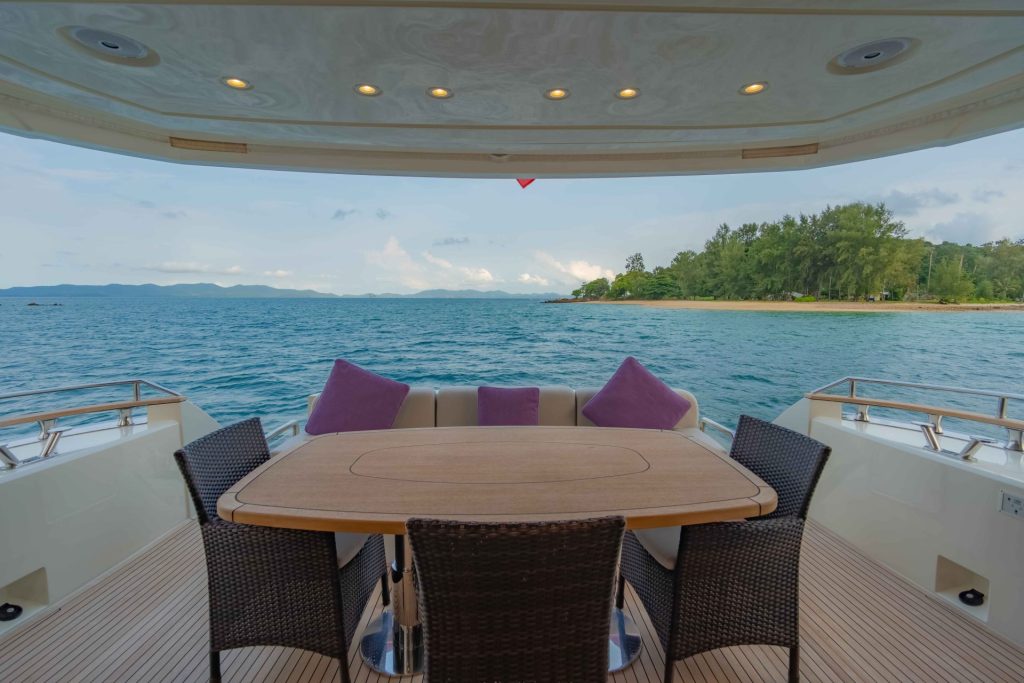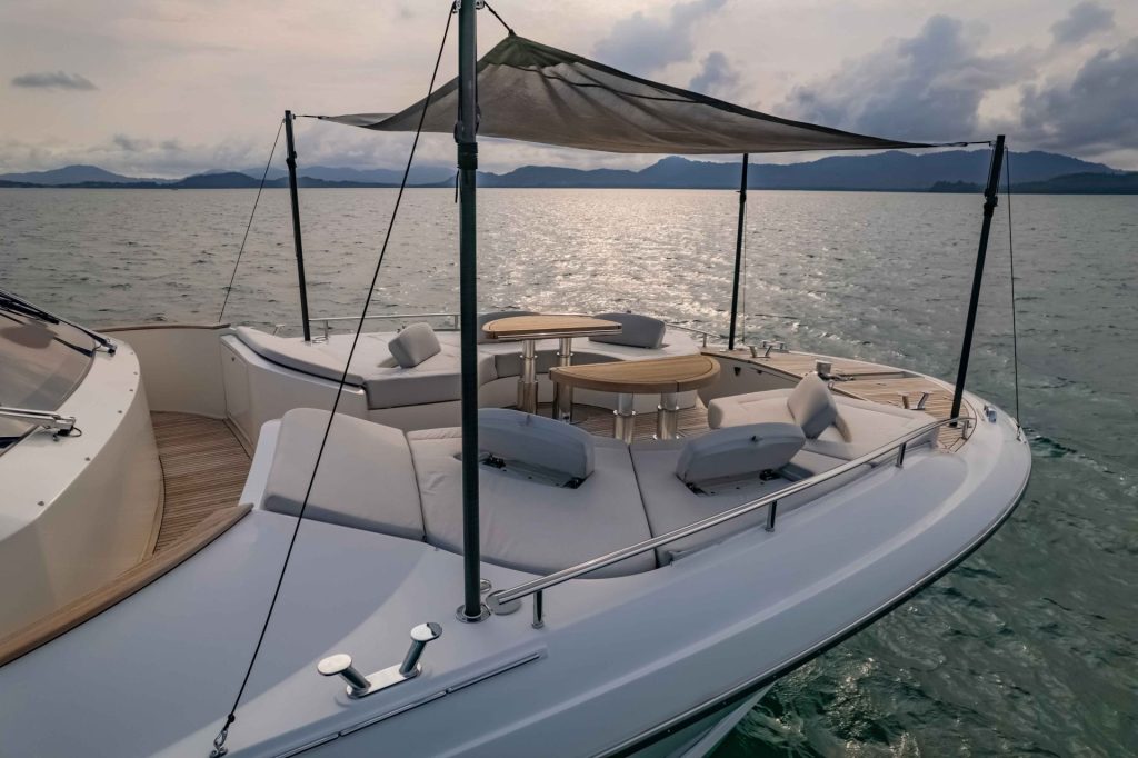 Illuzion has a superb open-plan design with the galley and saloon seamlessly flowing onto the covered aft deck. Living space is in abundance with the expansive and very functional flybridge, beautiful foredeck accessible by deep walk-around side decks, and a 1.6m swim platform on the aft deck that evokes the decadence of glamorous superyachts.
