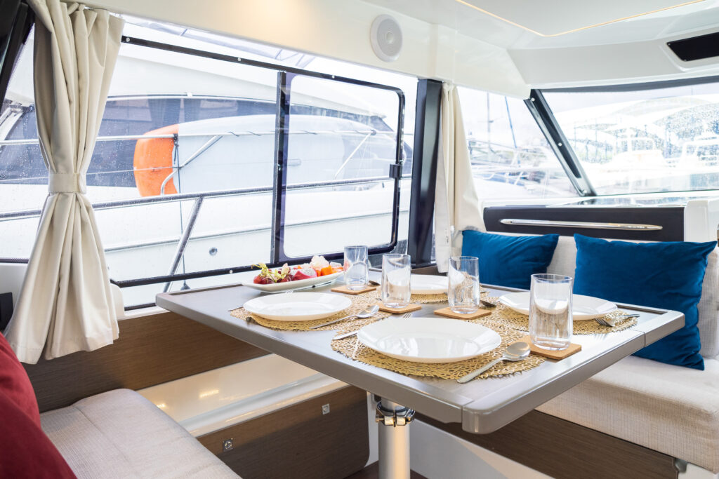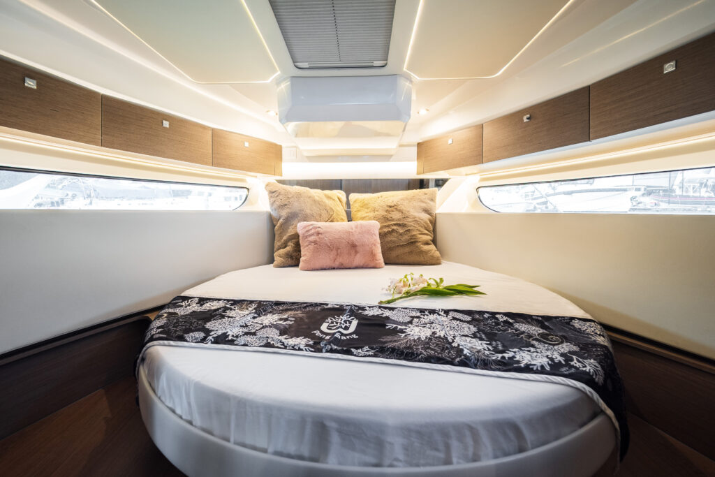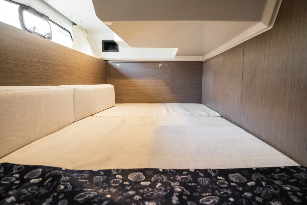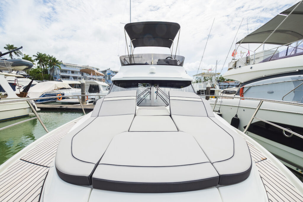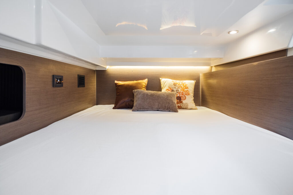 Bow Lounge: Forward-facing sun cushions provide a dedicated retreat for relaxing while at anchor.