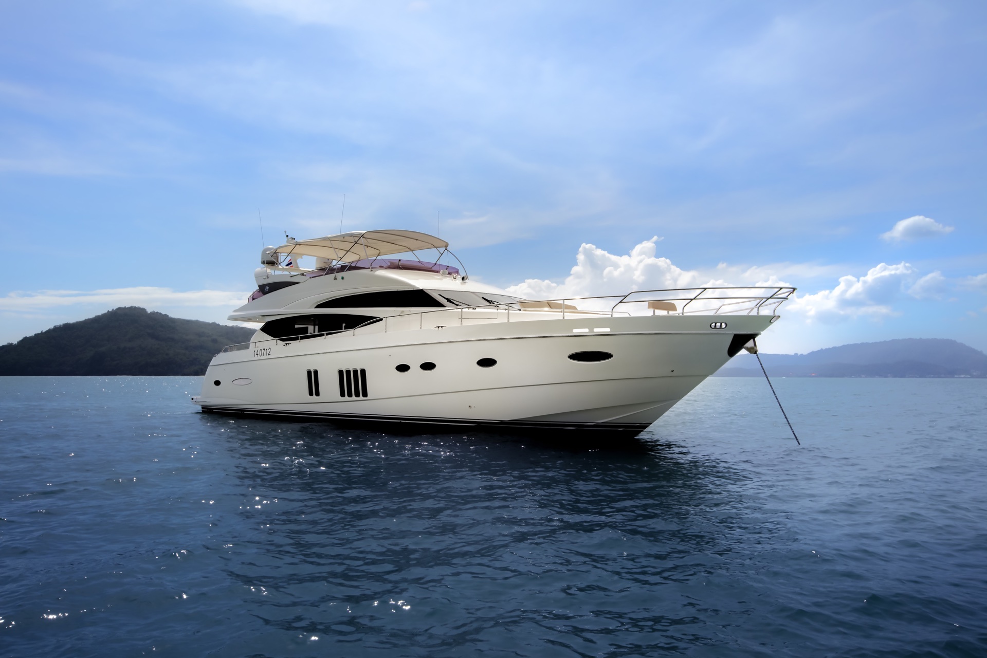 An elegant profile and V shaped hull are combined in this Princess 78’ Yacht.