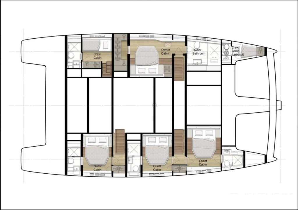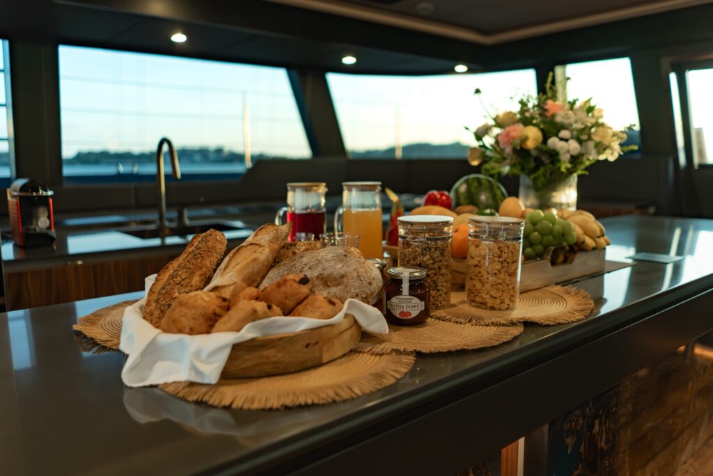 Perfect for families or groups, this Sunreef charter catamaran comfortably accommodates up to 8 guests with a thoughtfully designed layout that includes a luxurious king master suite and three generous queen cabins, all with private en-suite bathrooms. Contemporary interiors, soft premium linens, and large windows offering plenty of natural light make every cabin a peaceful escape. It’s the ideal setting for unwinding after a day spent exploring the Andaman Sea on your Sunreef 60 Eco in Phuket.