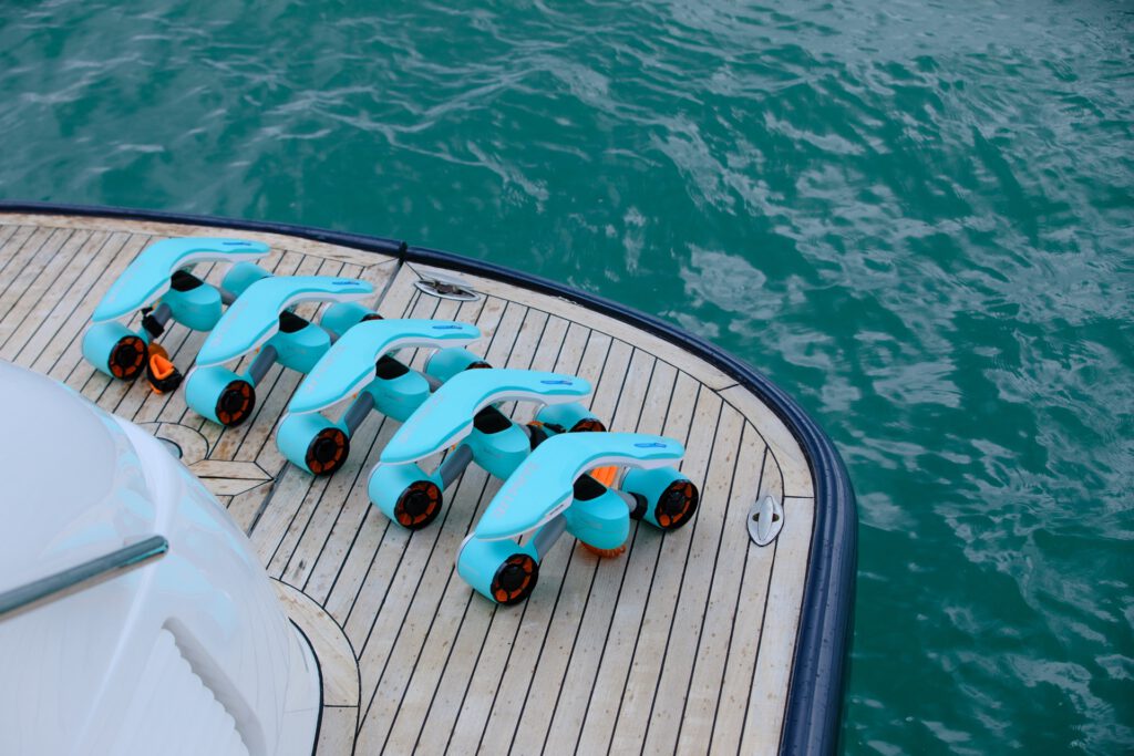 Stern garage with high-speed jet powered tender