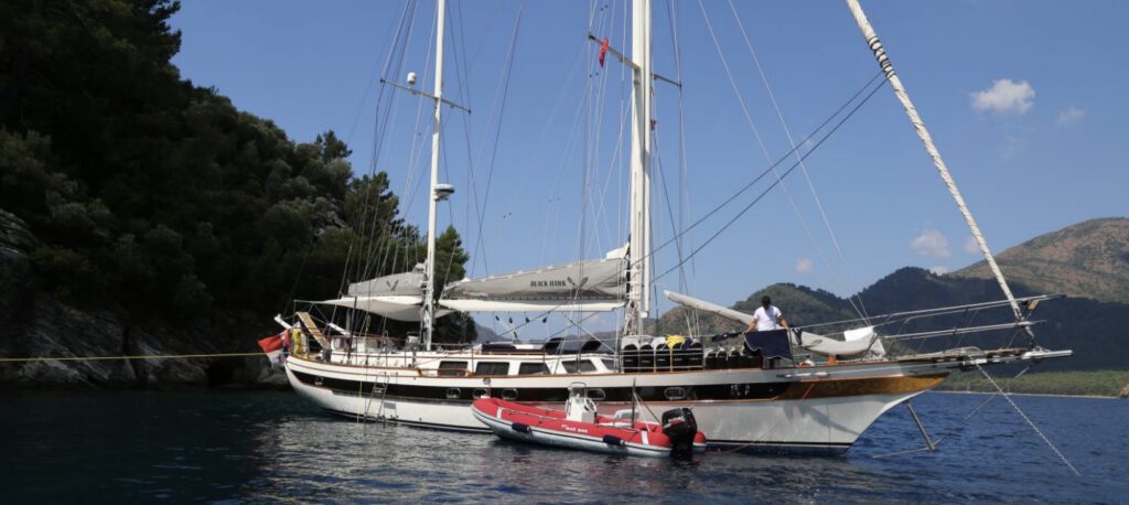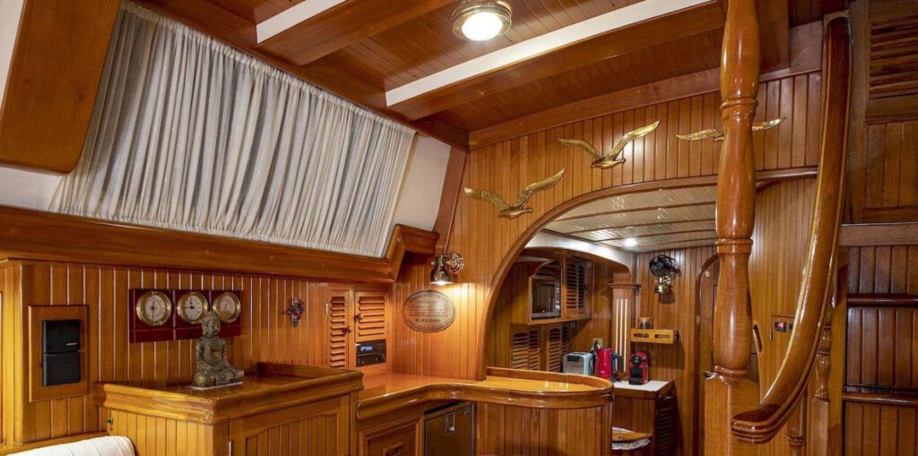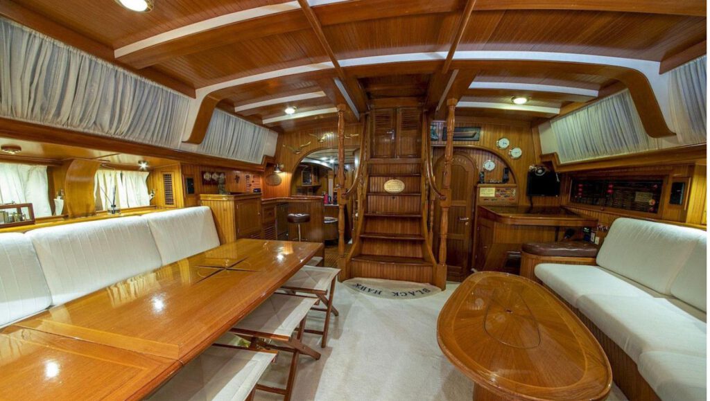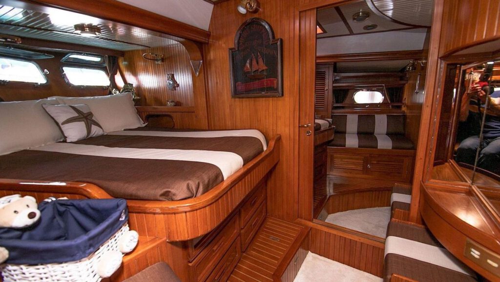 The yacht has 4 luxurious air-conditioned double cabins for up to 8 guests, each