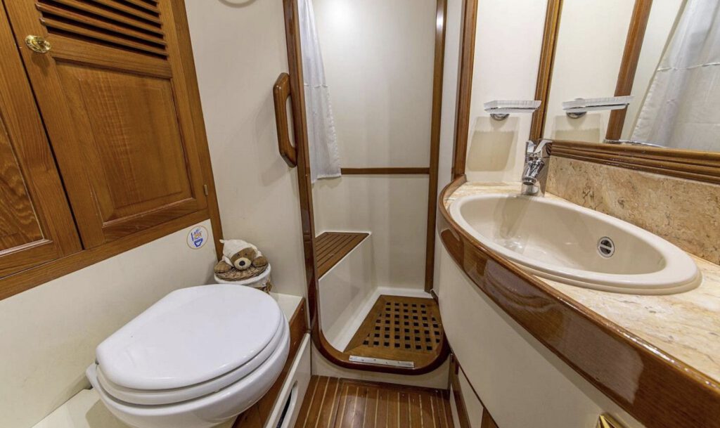 The yacht has 4 luxurious air-conditioned double cabins, each with private shower and toilet.